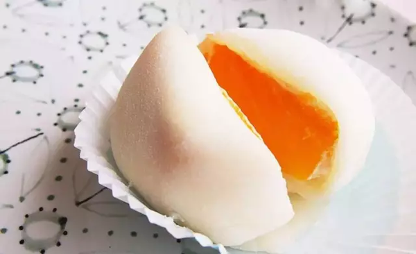 8.將收口朝下擺放,一個(gè)飽滿的芒果雪媚娘就完成了,放入冰箱冷藏后食用口感更佳