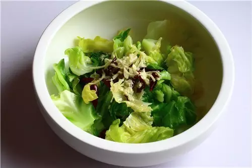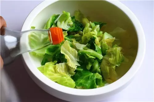 7、趁熱將油及香料淋在白菜碗內(nèi),攪拌均勻盛盤即可。