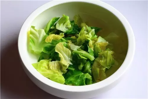 2、鍋內(nèi)燒開水,放入白菜氽燙約1分鐘。