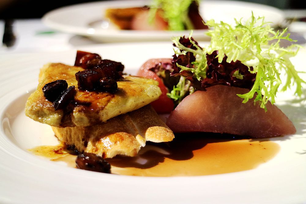 香煎法式鵝肝配雪梨,誘人的香氣,入口即化的口感,夠得上五星級,搭配的紅酒雪梨有解膩清口的作用。