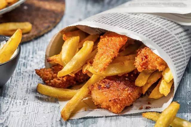 英國(guó)國(guó)寶級(jí)的美食“炸魚(yú)和薯?xiàng)l”(Fish and chips),也是用鱈魚(yú)制作的。