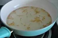 1. 在平底鍋中加熱一些植物油,將姜條炸至金色酥脆。瀝干油備用。