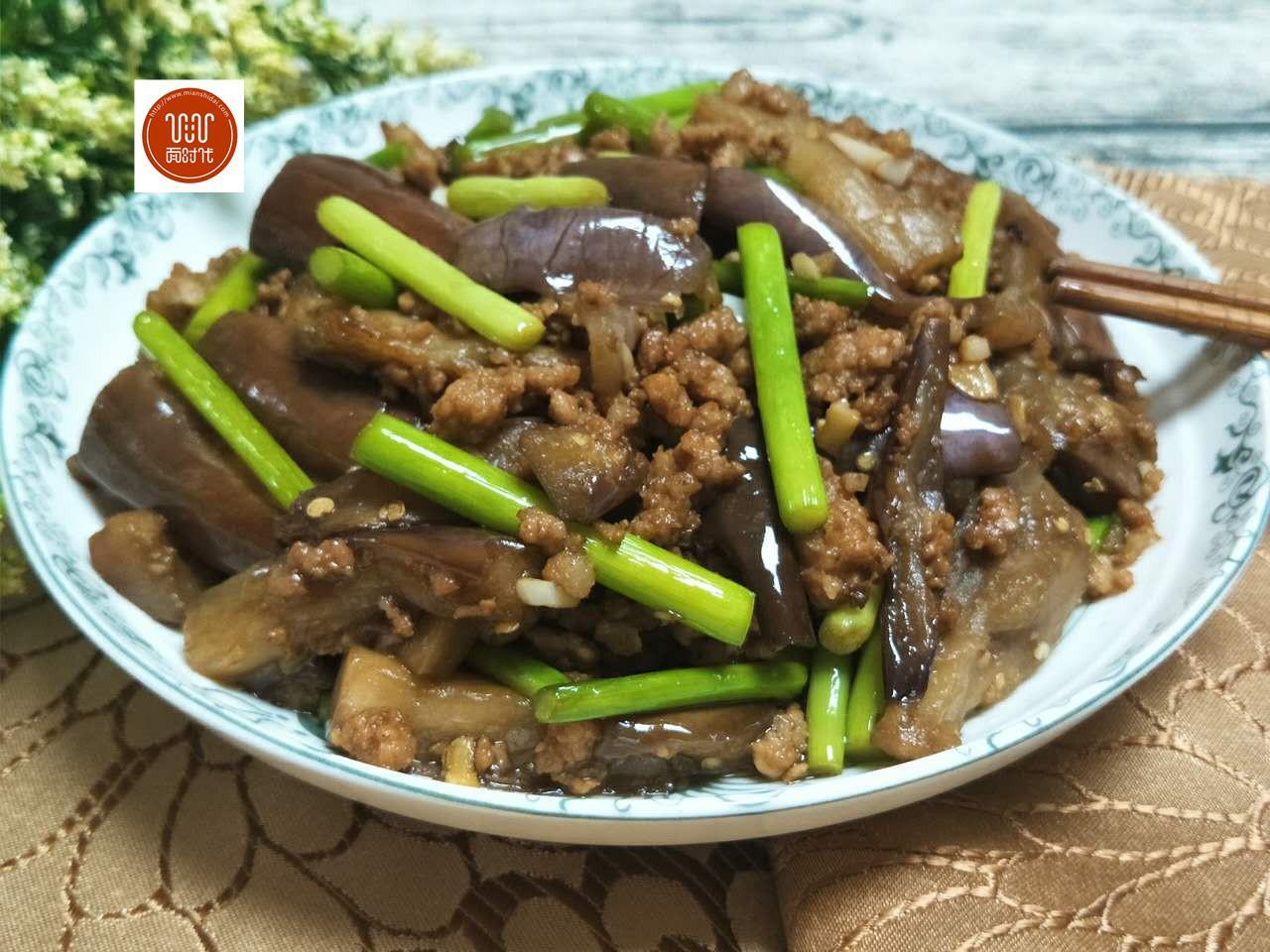 食材:茄子1根、肉餡150克,蒜薹幾根,油少量,鹽1小勺,醬油1勺,蒜瓣幾粒。