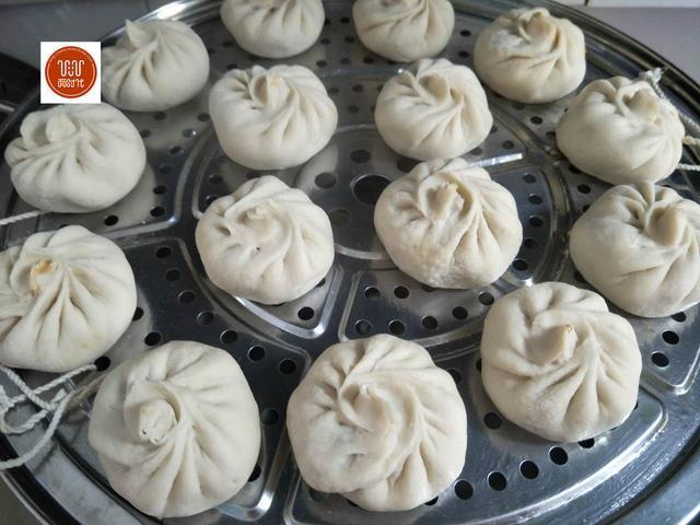 13、包成包子,屜上抹油,包子隨包隨留空隙碼在屜上,放到蒸鍋里,蓋上鍋蓋,靜置15分鐘,進(jìn)行第二次發(fā)酵。