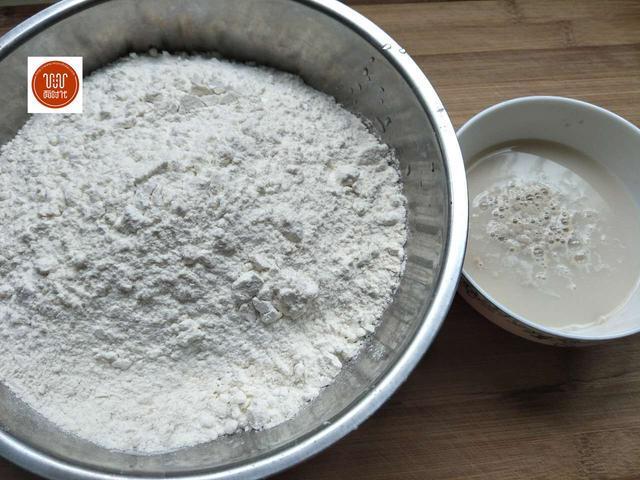 1、面粉800克放入盆中,溫水(不要超過(guò)40度)加入8克酵母溶化,把酵母水倒入面粉中,酵母水不夠 用清水補(bǔ),攪拌成大片的面片,把面揉成光滑的面團(tuán)。