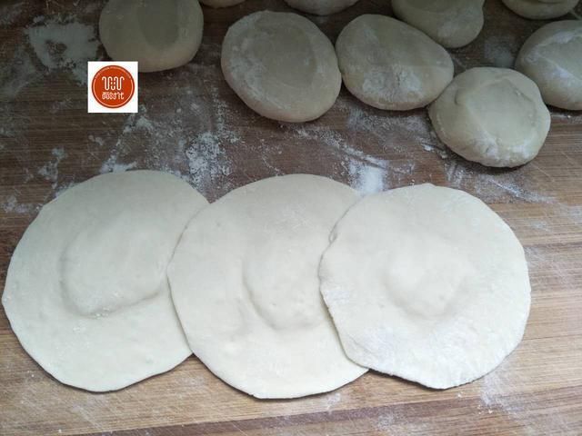 12、搓成長(zhǎng)條,分成小劑子,搟成中間厚邊緣薄的皮,包入適量的餡。