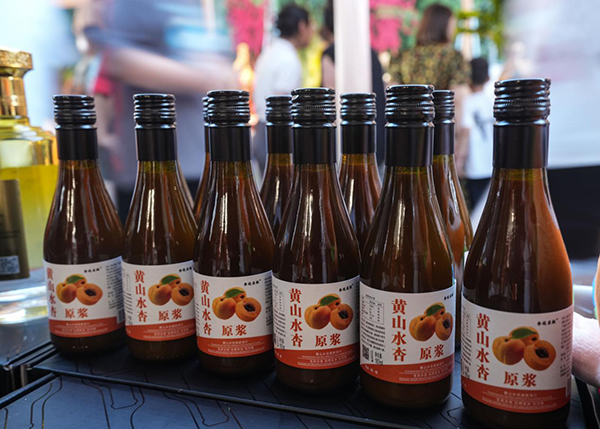 7月11日,在山東省鄒平市舉行的第三屆齊魯小吃文化節(jié)暨黃河大集夏日消費(fèi)季活動現(xiàn)場的鄒平美食展特展區(qū),人們在選購鄒平市黃山街道的水杏飲品。