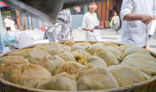 7月12日,山東省鄒平市舉行的第三屆齊魯小吃文化節(jié)暨黃河大集夏日消費(fèi)季活動現(xiàn)場現(xiàn)做熱賣展區(qū),鄒平市非遺項(xiàng)目紙皮包子吸引了眾多食客。