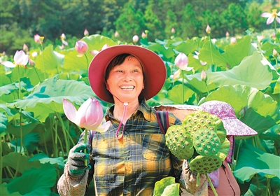 不久前,在江西省吉安市泰和縣冠朝鎮(zhèn)宏岡村生態(tài)蓮子種植基地,農(nóng)民正在采摘蓮蓬。