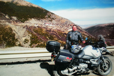 44歲的周長彬先生,留著藝術(shù)家的長發(fā),表情豐富,介紹起個人經(jīng)歷來,豪情滿懷,他從小愛習(xí)書畫,更愛駕摩托車全國游,多年來行程十余萬公里,是徐州摩托車機(jī)車驛站會員,如西藏、新疆、大慶、青海、昆明、所到之處都拍下祖國美麗河山、景點(diǎn),說著拿出一張照片,背景是一座石拱橋,他說:“這個是小品演員郭達(dá)拍攝電影《舉起手來》的實(shí)景。”他的一輛摩托車價值20多萬元,上了高速公路就是180公里的時速,可謂藝高人膽大。他又從貨架上拿起了一個摩托車頭盔:“這個帽子七千元”,可謂安全系數(shù)之高。周長彬是個有愛心的人,在四川汶川地震時,他個人捐了5000元,又出錢購買了徐州聾啞人學(xué)校的圍巾、毛巾等產(chǎn)品,捐給災(zāi)區(qū)人民。前階段,“華豫之門”鑒寶專家毛曉滬先生到徐州來,路過休閑軒時見到門面抱柱上書寫中國陶瓷界泰斗王西良先生的題字,很好奇,進(jìn)入店中與周長彬交談,見到他與老先生的合影及“休閑軒”書法題字。那飽含甲骨味的書體似閑云野鶴,游于自然。