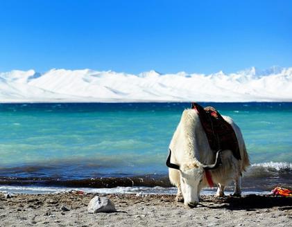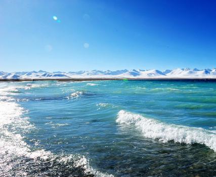 這是世界上海拔最高的咸水湖,也是西藏最大的湖泊。這是朝圣者心目中的圣地,湖中五個島嶼兀立于萬頃碧波之中,佛教徒們傳說它們是五方佛的化身。站在納木措湖邊,這世界上最高最美的神湖讓人震撼,仿佛置身于一個藍(lán)色的世界。各種層次的藍(lán)色,深的、淺的、濃的、淡的,散落在這里,印著幽靜的天空,心仿佛一瞬間就靜了。