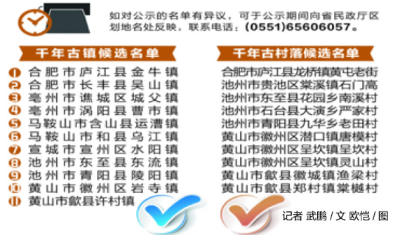 我省都有哪些知名的千年古鎮(zhèn)、古村落?今年,全省開展了千年古鎮(zhèn)、千年古村落地名文化遺產(chǎn)申報(bào)。記者11月11日獲悉,經(jīng)省民政廳、省住房和城鄉(xiāng)建設(shè)廳、省旅游局、省文物局、省地方志辦公室審核,我省已確定首批千年古鎮(zhèn)、千年古村落候選名單,從當(dāng)天開始到11月19日面向社會公示。(中安在線)