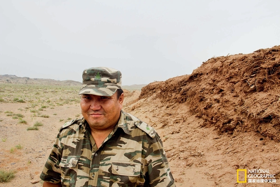 恩赫巴亞爾是蒙古國(guó)邊防軍軍官,他檢查完威廉•林賽的探險(xiǎn)考察通行證之后,還要為這次行程100公里“成吉思汗墻”考察工作保駕護(hù)航。他的邊防哨所位于中蒙邊境的黑色戈壁灘的心臟。這里夏季40攝氏度,隆冬零下28攝氏度。
