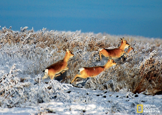 蒙古人對(duì)“成吉思汗墻”的修筑原因的解釋是:為了阻止當(dāng)?shù)貙氋F的狩獵資源蒙古瞪羚的大規(guī)模遷移。這是中蒙邊境上驚恐萬狀的蒙古瞪羚。每年的11月底開始,將有數(shù)萬黃羊從蒙古國(guó)越境來到中國(guó)越冬。
