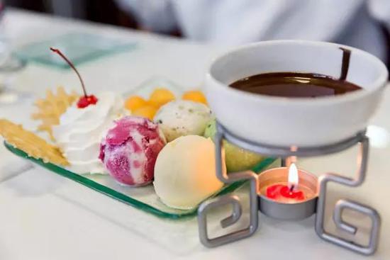 冰激凌火鍋可以說是巧克力火鍋的衍生品,制作方法與巧克力火鍋極為相似,只不過食材由水果換成了可口的冰激凌,而食材的變化也讓這道火鍋變得極富魅力:醇香濃厚的巧克力與冰爽的冰激凌碰撞出的美味,讓人回味無窮,更有人說若沒有品嘗過這一火鍋,人生會是不完整的。