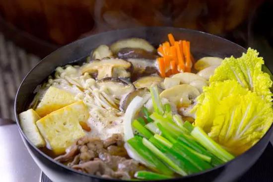 壽喜鍋是日本的一種牛肉火鍋,做法和吃法都很獨特:先在平底鐵鍋中涂抹牛油,然后放上牛肉片并輔以醬汁,再依次加入各類配菜煮制后便大功告成,而食材是蘸著蛋液食用的,十分美味。此外,最傳統(tǒng)的日式壽喜鍋使用的是上等的和牛,據(jù)說吃完后會有一種人生無憾的感覺。