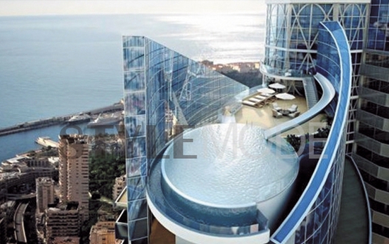 摩納哥新國賓大廈的空中別墅,位于全球著名的觀光度假勝地,此建筑不僅有奢華頂級配備,還有一條水道連接到外部無邊界泳池。