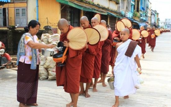 由于緬甸人將禮佛作為生命中最重大的事,幾乎家家都有親人出家做過僧人,所以信徒們都樂于奉獻(xiàn)布施給和尚。