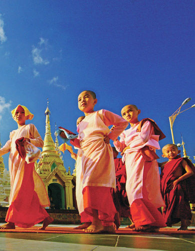 在緬甸,男子到了一定的年齡都必須出家當(dāng)一次和尚,社會上才承認(rèn)其成人,還俗以后才能夠享有結(jié)婚的權(quán)力。出家的年齡一般在10歲上下,出家時間,在以前最短為一年,已縮短為7天。