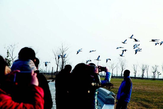 大縱湖景區(qū)生態(tài)環(huán)境良好,各種植物達120種,野生動物有50余種,每到冬季都會迎來50多種候鳥約30萬只。元旦成為人與候鳥親密接觸的最佳時間。圖為1月1日,上海游客在觀鳥現(xiàn)場拍攝。