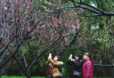 前天,蘇州虎丘山景區(qū)內(nèi),綻放的早梅上掛滿(mǎn)雨珠,晶瑩剔透,花朵在雨水的滋潤(rùn)下格外嬌美,吸引游人拍照留影。