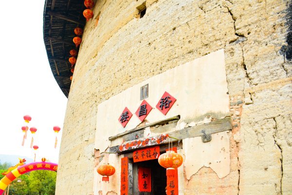 這就是目前福建土樓現(xiàn)存最古老的土樓——裕昌樓,被譽為“福建土樓之母”。它的外墻遍體斑駁龜裂,看上去就像一個滿臉皺紋的老人。據(jù)張氏族譜記載:裕昌樓始建于元朝中期(1308年),至今已有700多年歷史,別看它的外墻表面斑斑駁駁,其實它的墻體依然堅固,由劉、羅、張、唐、范五姓族人共同修建。