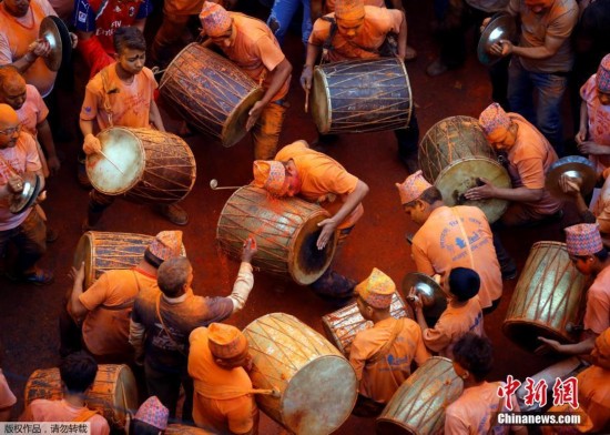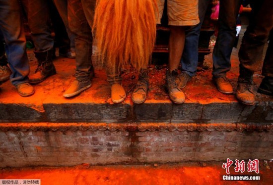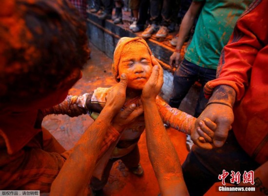原標題:尼泊爾民眾迎接新年 上演“朱砂大戰(zhàn)”