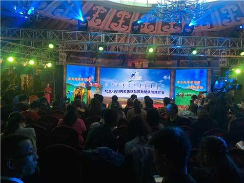 5月5日,由錫林郭勒盟行政公署主辦,錫林郭勒盟旅游局承辦,錫林郭勒盟團委、“2017 浪琴表國際馬聯(lián)(FEI)場障礙賽世界杯—中國聯(lián)賽”主辦官方單位協(xié)辦的“2017內(nèi)蒙古錫林郭勒盟旅游推介會”在朝陽公園蒙古大營舉行。