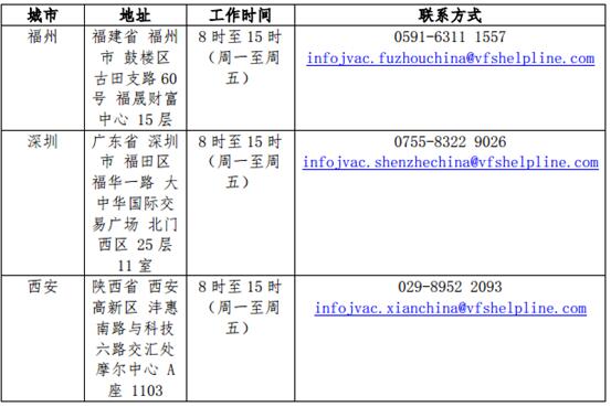 福州、深圳、西安簽證申請(qǐng)中心詳細(xì)信息。來(lái)源:丹麥駐華大使館