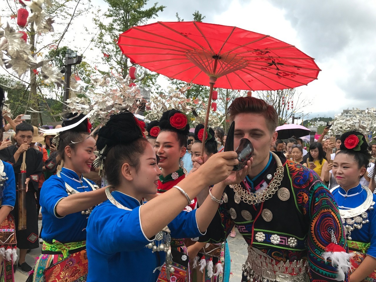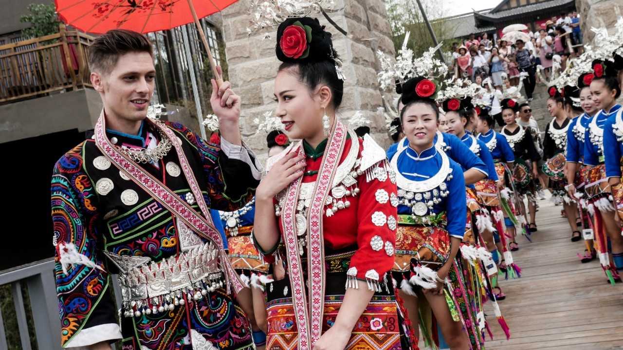 對小鎮(zhèn)居民和游客來說,一位英國網(wǎng)紅男模跑來當新郎,這場婚禮不僅是“苗族的”,更是世界的。