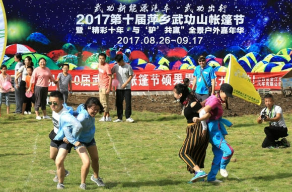 萍鄉(xiāng)武功山帳篷節(jié)于2008年由萍鄉(xiāng)市政府創(chuàng)辦,這是國內(nèi)最早以“戶外運動”為主題創(chuàng)辦的狂歡盛事之一。從2008年開始,武功山帳篷節(jié)越來越火爆,活動內(nèi)容越來越豐富、驢友好評越來越集中,參與人數(shù)從2008年的4000人增長到2016年的4萬余人,活動內(nèi)容也從單純的競技賽事和露營活動,轉(zhuǎn)變?yōu)榈饺诤弦魳、旅游休閑、文化娛樂、戶外賽事于一體的大型戶外節(jié)慶活動。帳篷節(jié)場面非常壯觀,可以說是國內(nèi)規(guī)模最大、人數(shù)最多的帳篷節(jié),被CCTV5、CCTV7、旅游衛(wèi)視、人民日報、中國青年報、人民網(wǎng)、新華網(wǎng)、新浪網(wǎng)、搜狐網(wǎng)等一百多家媒體報道,網(wǎng)絡(luò)超過三億次點擊。