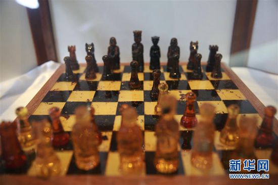 這是5月3日在多米尼加首都圣多明各的琥珀博物館拍攝的用琥珀制成的國際象棋。加勒比海島國多米尼加盛產(chǎn)琥珀,同時也是世界珠寶極品——藍(lán)珀的主產(chǎn)地。藍(lán)珀在陽光下呈現(xiàn)出夢幻的藍(lán)色,是琥珀中最珍貴的品種,被珠寶業(yè)界公認(rèn)為“琥珀之王”。多米尼加琥珀博物館位于圣多明各市中心的哥倫布廣場旁,這里除了展示各式各樣的琥珀外,還有關(guān)于琥珀歷史和琥珀知識的展覽。新華社記者淡航攝
