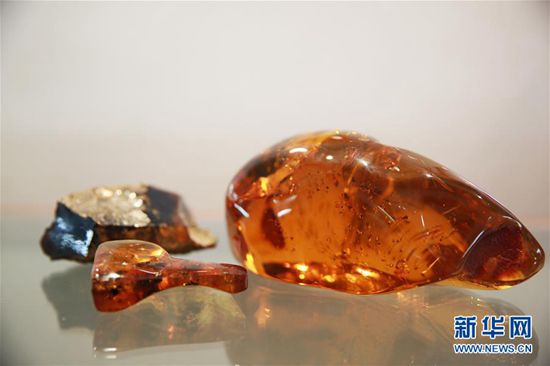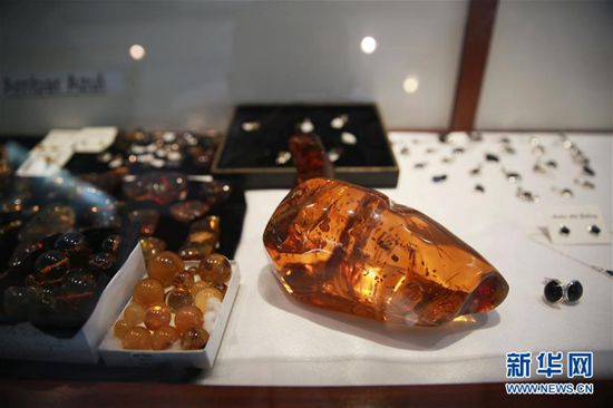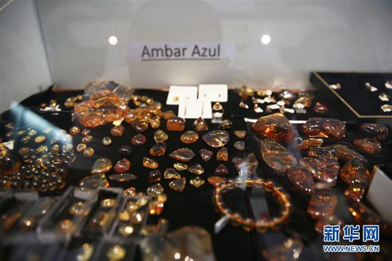 這是5月3日在多米尼加首都圣多明各的琥珀博物館拍攝的琥珀和藍(lán)珀。加勒比海島國多米尼加盛產(chǎn)琥珀,同時也是世界珠寶極品——藍(lán)珀的主產(chǎn)地。藍(lán)珀在陽光下呈現(xiàn)出夢幻的藍(lán)色,是琥珀中最珍貴的品種,被珠寶業(yè)界公認(rèn)為“琥珀之王”。多米尼加琥珀博物館位于圣多明各市中心的哥倫布廣場旁,這里除了展示各式各樣的琥珀外,還有關(guān)于琥珀歷史和琥珀知識的展覽。新華社記者淡航攝