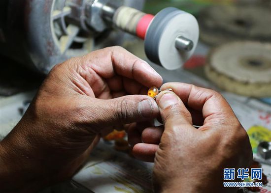5月2日,在多米尼加首都圣多明各的琥珀博物館,一名工人在制作琥珀耳環(huán)。加勒比海島國多米尼加盛產(chǎn)琥珀,同時也是世界珠寶極品——藍(lán)珀的主產(chǎn)地。藍(lán)珀在陽光下呈現(xiàn)出夢幻的藍(lán)色,是琥珀中最珍貴的品種,被珠寶業(yè)界公認(rèn)為“琥珀之王”。多米尼加琥珀博物館位于圣多明各市中心的哥倫布廣場旁,這里除了展示各式各樣的琥珀外,還有關(guān)于琥珀歷史和琥珀知識的展覽。新華社記者淡航攝