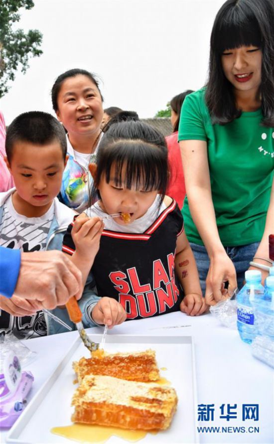5月20日,孩子們?cè)?ldquo;割蜜節(jié)”上品嘗蜂蜜。新華社記者 李欣 攝