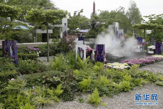 這是5月21日在英國倫敦的切爾西花展上拍攝的中國武漢水花園。新華社發(fā)(蒂姆·愛爾蘭 攝)
