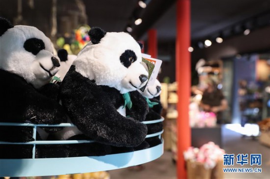 這是6月9日在德國柏林動物園拍攝的大熊貓主題紀(jì)念品。來自中國的大熊貓“夢夢”和“嬌慶”于2017年6月24日抵達(dá)德國柏林。在過去近一年的時間里,當(dāng)?shù)孛癖妼λ鼈兊臒崆槲从薪z毫減退。它們?nèi)缃褚殉蔀榘亓謩游飯@的“明星”。新華社記者 單宇琦 攝