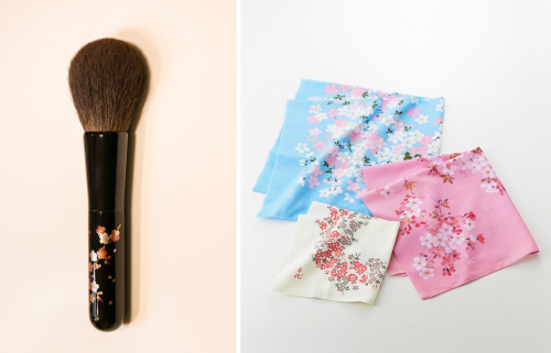 日本匠人選材嚴(yán)謹(jǐn)并用嫻熟的手法純手工制作的「竹寶堂」的化妝刷,其刷柄是一款采用傳統(tǒng)蒔繪漆藝技術(shù)制作出來的櫻花圖案的精品。其它還有許多在日本是隨處可見的物品,卻都賦予了日本傳統(tǒng)之美。其中包容性最豐富的便是萬能布“風(fēng)呂敷”了,它也有櫻花的圖案。走進店內(nèi)便可讓你大飽眼福,不同形態(tài)的櫻花以優(yōu)美的姿態(tài)綻放在你的眼前。