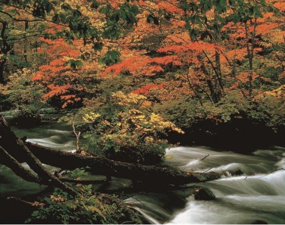 “奧入瀨溪流”離十和田湖的入口“子之口”14千米遠(yuǎn),約有200米的高低落差,所以溪流有著千變?nèi)f化的美。紅葉時(shí)節(jié),沿著溪流的步行道漫步其中,格外得賞心悅目。這里被指定為國家特別自然名勝。周邊有十和田湖溫泉鄉(xiāng)、十和田湖和八甲田山。往年的賞葉時(shí)間為10月下旬至11月上旬,這里的紅葉種類豐富,有蓮香樹、山毛櫸、七葉樹、色木槭、黃花楓等。在石戶之瀨、銚子大瀑布、阿修羅之流、云井瀑布等觀景點(diǎn)欣賞,別有一番景致。