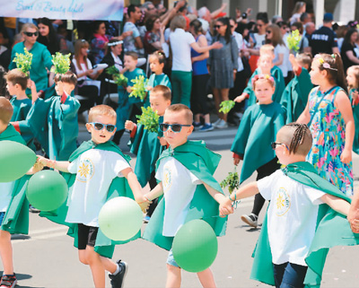 圖為6月6日,在保加利亞卡贊勒克,小朋友參加玫瑰節(jié)游行。