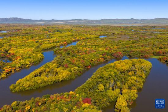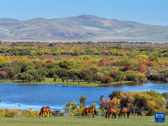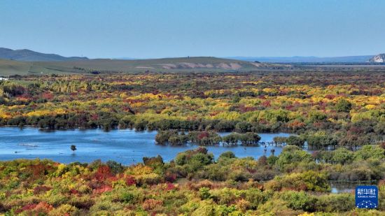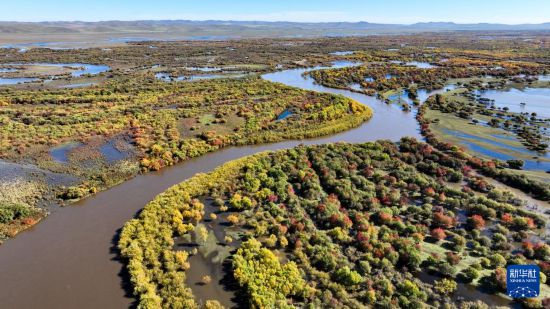 時(shí)下, 內(nèi)蒙古額爾古納濕地迎來(lái)秋日盛景,多彩的灌木叢點(diǎn)綴其間,蜿蜒的河流如藍(lán)絲帶般靜靜流淌,宛若大自然打翻的調(diào)色盤(pán)。