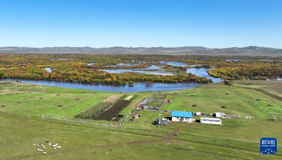 這是9月15日在內(nèi)蒙古額爾古納市拍攝的額爾古納濕地風(fēng)光(無(wú)人機(jī)照片)。