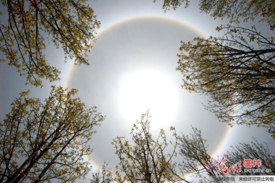 當(dāng)日,太陽周圍出現(xiàn)一個(gè)碩大的美麗的光環(huán),時(shí)間長達(dá)數(shù)小時(shí),引得行人紛紛駐足觀看這一神奇的天文現(xiàn)象。當(dāng)日是母親節(jié),不少人稱這是大自然獻(xiàn)給母親最美的禮物。(何嘯虎攝/光明圖片)