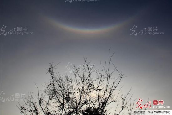 3月25日正午,昆明上空出現(xiàn)罕見的日暈景象。據(jù)了解,日暈是一種罕見的大氣光學(xué)現(xiàn)象,是日光通過卷層云時(shí),受到冰晶的折射或反射而形成的。民間認(rèn)為,出現(xiàn)日暈天氣有可能轉(zhuǎn)陰或下雨。任東攝