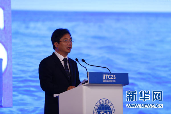 圖為2015國(guó)際海島旅游大會(huì)執(zhí)委會(huì)主任、舟山市委書記、市長(zhǎng)周江勇在閉幕式上致辭。新華網(wǎng)發(fā)