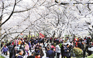 彭祖園櫻花節(jié)游人如織。