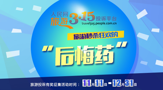 “雙11”旅游狂歡期間,1元、11元、111元的優(yōu)惠、秒殺旅游產(chǎn)品比比皆是。但是,人民網(wǎng)旅游3·15投訴平臺常常收到針對旅游企業(yè)優(yōu)惠、秒殺產(chǎn)品的投訴,有的是投訴人沒看到使用提示,有的是旅游產(chǎn)品體驗太差。希望購買性價比高產(chǎn)品是人之常情,但是維權(quán)艱難又令一些游客頭疼不已,人民網(wǎng)旅游3·15投訴平臺起推出“雙11”旅游秒殺狂歡的“后悔藥”活動,游客在活動期間,購買旅游產(chǎn)品后需維權(quán)的,凡是在本平臺進行投訴的,平臺將幫助網(wǎng)友進行維權(quán),且前20名投訴人皆獲得人民網(wǎng)精美禮品一份,其中維權(quán)過程完整的投訴人還有機會獲得Iphone6一部。 查看詳細介紹》》》