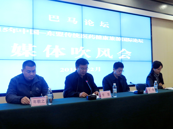12月9日,巴馬論壇—2015中國—東盟傳統(tǒng)醫(yī)藥健康旅游國際論壇(簡稱“巴馬論壇”)媒體吹風會在南寧舉行。自治區(qū)旅游發(fā)展委副主任甘霖代表“巴馬論壇”組委會向媒體記者通報了“巴馬論壇”籌備工作情況。
