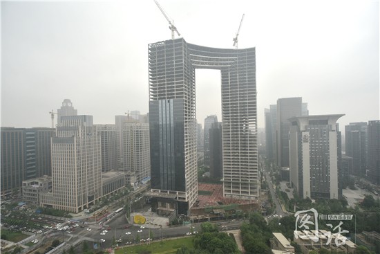 繼央視“大褲衩”、蘇州東方之門“大秋褲”之后,成都也有了一座被網(wǎng)友稱為“直筒牛仔褲”的建筑。在成都南門天府二街,記者找到了這棟建筑。原來這是一個由兩棟200米高的建筑通過“空中連廊”連接在一起的寫字樓。遠看的確和“蘇州東方之門”很有相似之處,難怪網(wǎng)友要用“褲子”來形容它。你覺得它像什么呢?華西都市報記者 吳小川 攝影