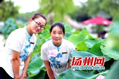 記者昨在瘦西湖景區(qū)看到,為迎接“十一”黃金周和即將到來的中秋節(jié)小長假,瘦西湖船娘更換了“民國風(fēng)”的新裝,泛舟湖上的清秀身影,吸引了不少游客拍照。瘦西湖船娘這次更換的新裝上身采用真絲面料,繡制藍(lán)色牡丹,下身黑色裙擺,配著“中國風(fēng)”的繡花鞋,整體風(fēng)格與瘦西湖園林氣質(zhì)非常協(xié)調(diào)。 董輝 攝